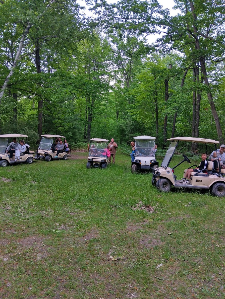 Golf carts are allowed on roads and improved trails. Anyone using a cart and or vehicle off a maintained trail or roadway will be evicted from the campground.