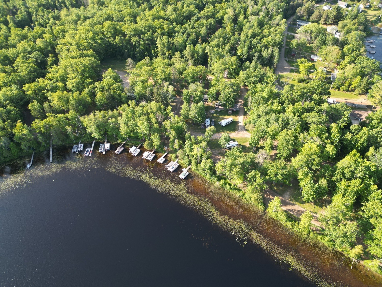 A limited number of docks will be permitted in a designated area with the expressed permission of campground management. Docks must be of like construction and equidistant from existing docks. When the number of permitted docks is reached, no further dock placement will be allowed. As vacancies occur, they will be filled on a first come, first served basis.