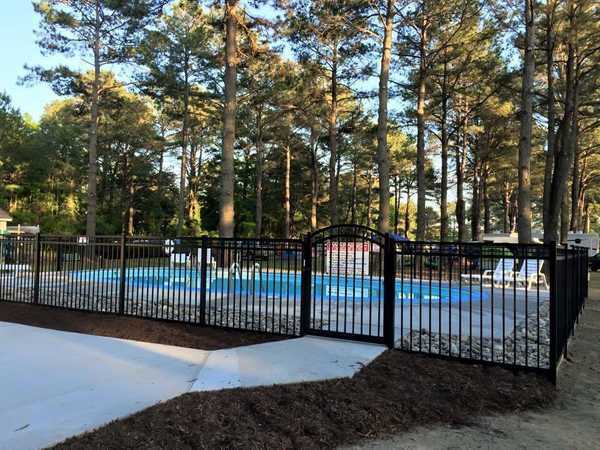 Campsite amenities offered include four piers with plenty of boat docks, a general store with a bait and tackle shop, a cafe, a five swimming pools, golf cart rentals, picnic tables, fire circles, and grills. It also includes basic amenities like restrooms with hot showers and laundry facilities. Visitors can also enjoy activities such as camp games, themed weekends, horseshoes hiking, biking, fishing, crabbing, kayaking, and much more.