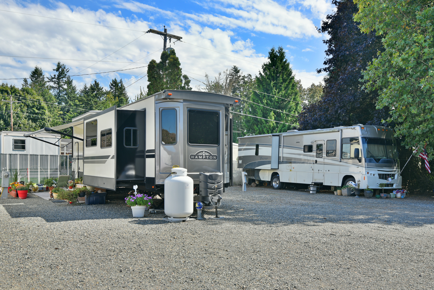 Majestic Mobile Manor and RV Park is located near Puyallup, Washington. It features 88 full hookup campsites that are big rig friendly for vehicles of up to 75 feet. Many of them accommodate slide out RVs. The park provides free WiFi, is pet-friendly, and has a dump station.