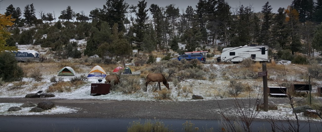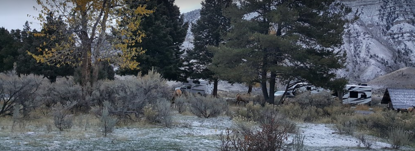 Mammoth Hot Springs Campground is located near Yellowstone National Park, at an elevation of 6,200 feet above sea level. It features 86 campsites that are big rig friendly, many of which are pull through accessible. The park allows pets and has a dump station.