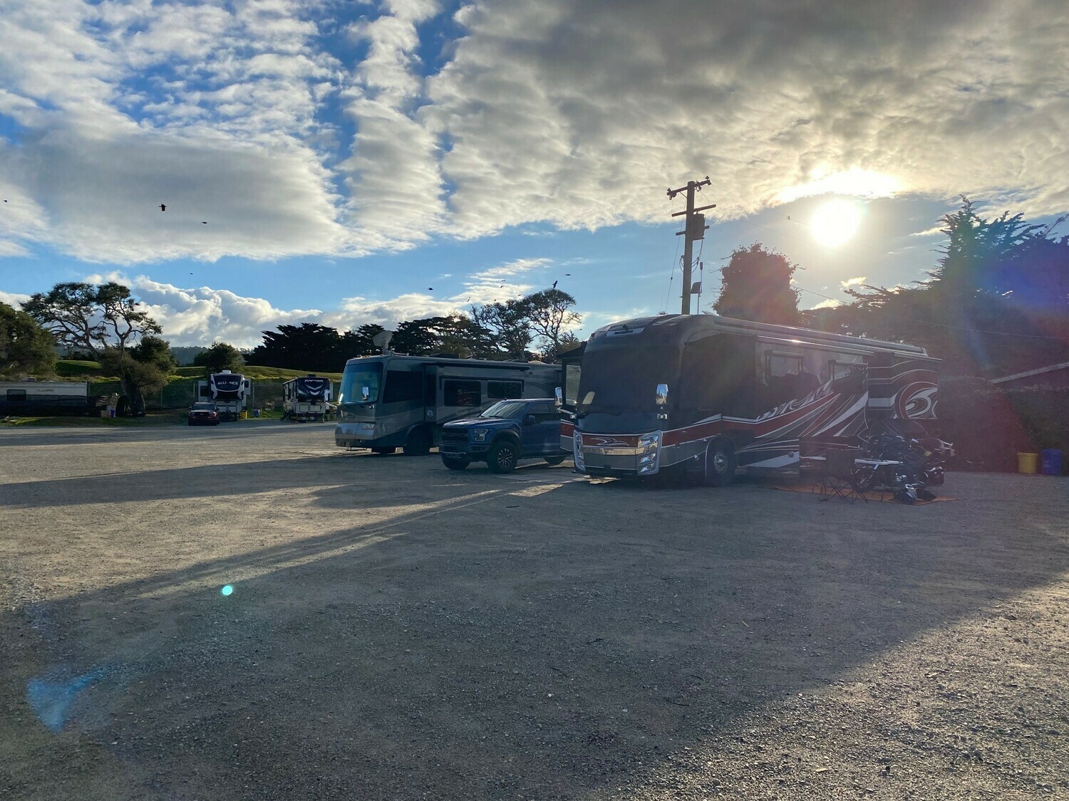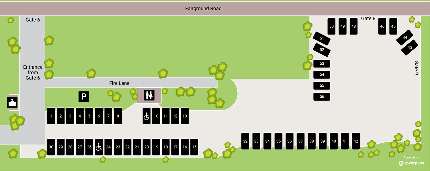 RV park permits shall be current and prominently always displayed on each vehicle’s dashboard. Each guest is allowed one vehicle in addition to RV. This vehicle must be parked in the dirt lot (Oak Tree Ring) to the left of the bathrooms unless otherwise instructed by the Camp Host. Additional vehicles and trailers will be directed to park in an area designated by the Camp Host, overnight parking of these additional vehicles will be charged $5.00 per night. Those requiring ADA access will be accommodated by the Camp Host, located at the RV Office. All RV's must have a tow vehicle on site in case of emergency. Vehicles shall not block any other RV sites, roads, or gates. RV park occupancy only permits access to the RV park. All other areas of the Monterey County Fairgrounds are accessible only during scheduled events with admission, if applicable.