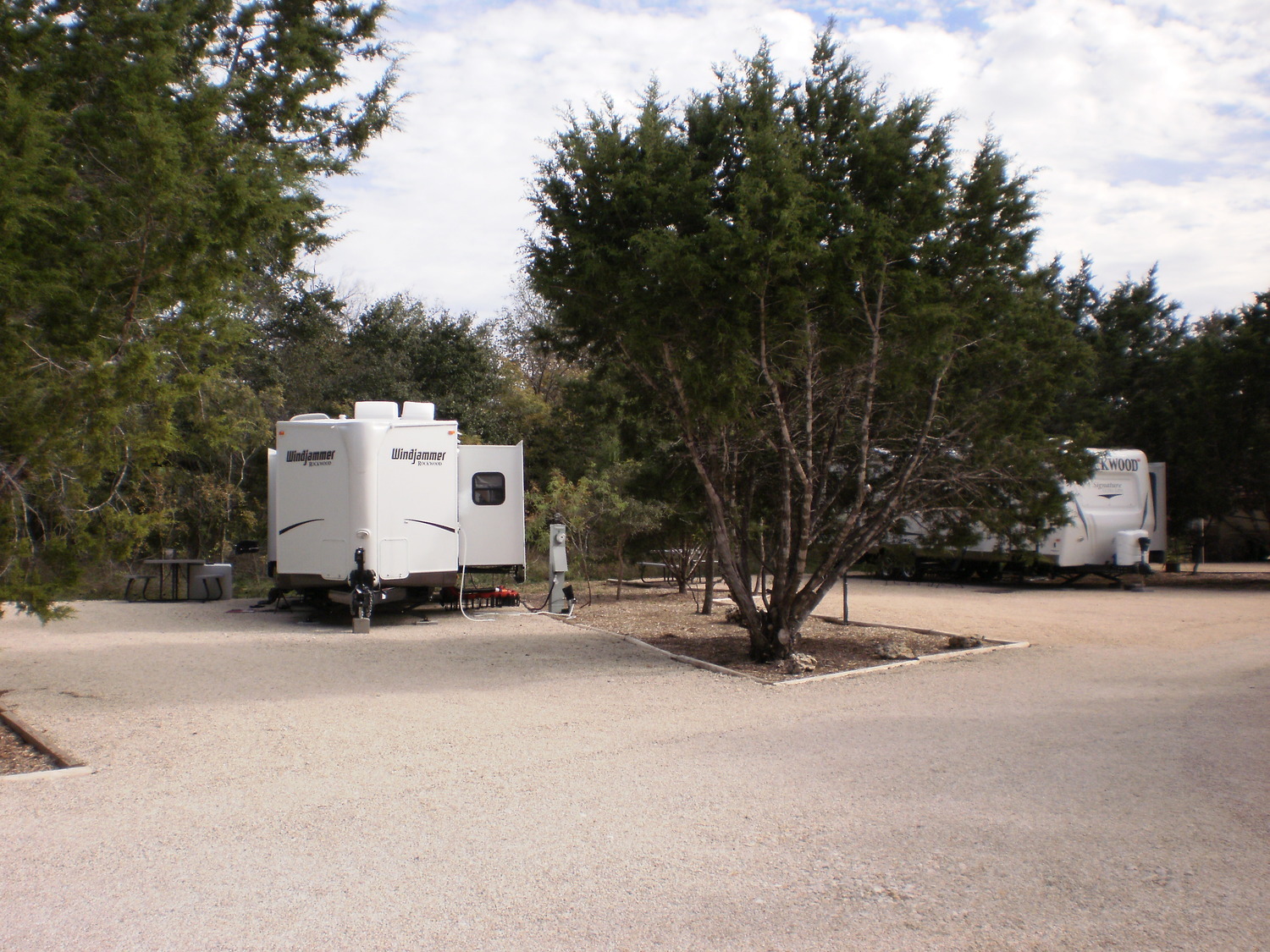 The Rio Bonito Cabin Resort & RV Park is located in the beautiful town of Liberty Hills, Texas and is a great place for an authentic southern vacation. Onsite, campers can expect great activities such as hiking, swimming in the San Gabriel River, whitewater rafting, canoeing and kayak tours, fishing and mountain biking. Nearby local attractions include the Thirsty Mule Winery and Vineyard, Harvest Ranch dinner theater and a shooting range. There's also great local eateries and watering holes for both locals and visitors to enjoy, and neighboring attractions like Lake Georgetown, barbecue restaurants, biking, historic sightseeing, golfing and boating. Amenities at the park include: pool access, laundry facilities, full hookups, WIFI, nature trails, sewerage, pull thrus and 20/30/50 amp sites. Hope to see you soon!