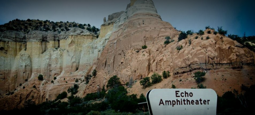 3 miles west from Ghost Ranch Education & Retreat Center is the Echo Amphitheater, a favorite among serial visitors to Abiquiu, New Mexico. Schools, clubs and vacationers take advantage of the covered picnic areas and Echo Amphitheater Trail. The last part of the trail has steep stairs leading up to the Echo Canyon, where the rocks are a natural habitat for snakes, so be sure to stay on the trail and off the rocks! There's also tons of hiking, biking, fishing, hunting, horseback riding, skiing and snowboarding to be done. There's rarely a dull moment at the Echo Amphitheater!